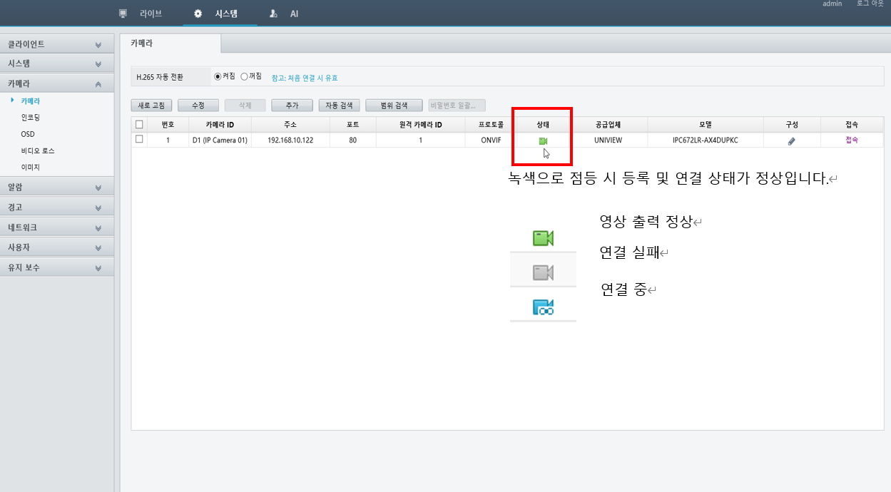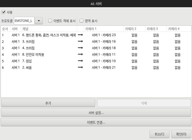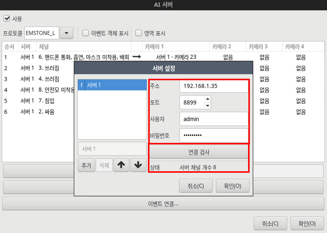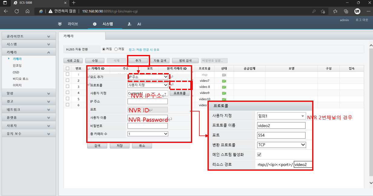 카메라 등록 > 엠스톤 NVR의 채널을 RTSP에 등록합니다.