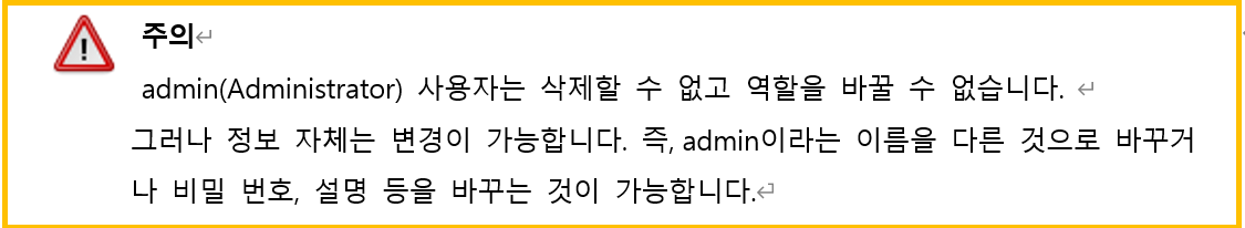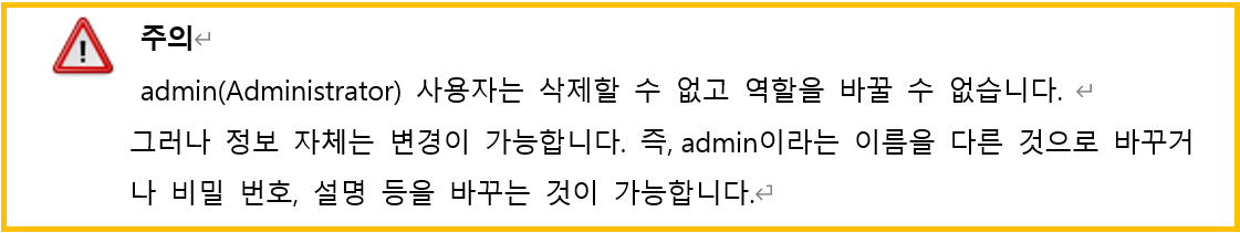 현재 등록중인 계정에 해당 설정의 권한을 부여할지 결정합니다.