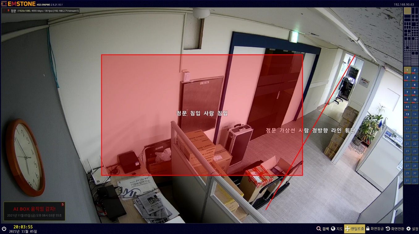 채널선택: AIBOX의 “영상소스”에 등록한 AI알고리즘 채널 선택