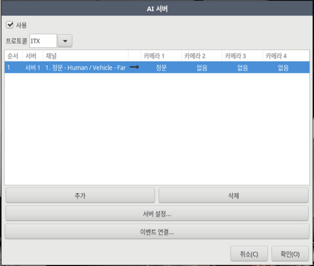 AIBOX 서버당 최대 16개 등록 가능 (AI 알고리즘 Human/Vehicle-Normal 기준)