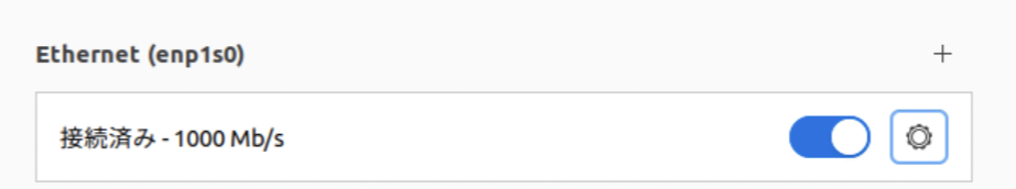 右上をクリックして、有線接続中または有線接続などを表示した有線ネットワーク設定に入ります。