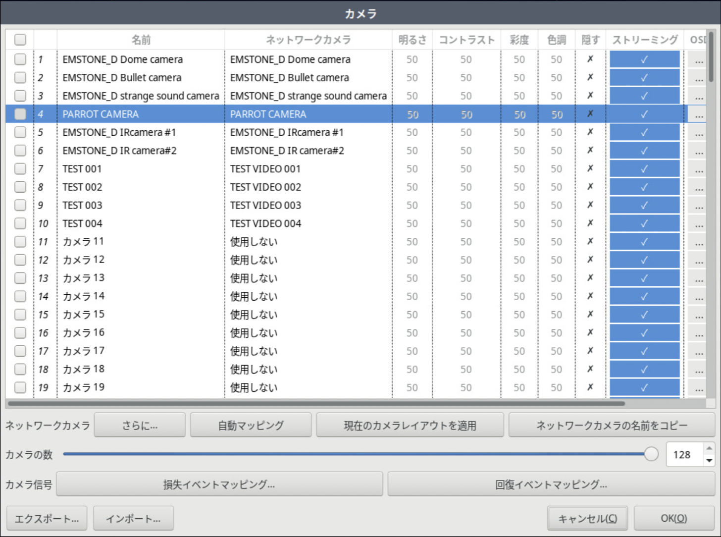 各チャンネルごとに非表示、ストリーミング、OSD設定ができます。