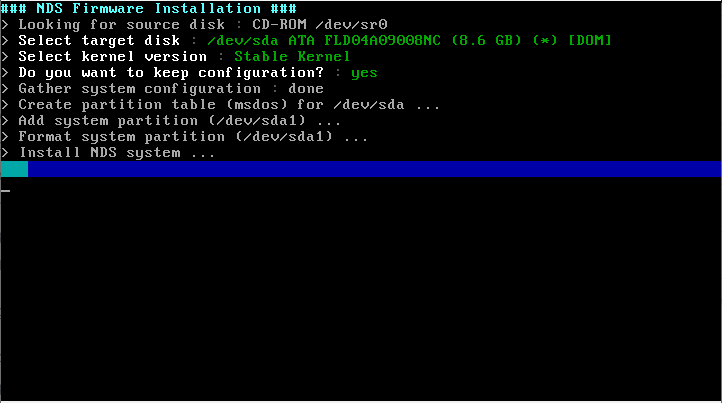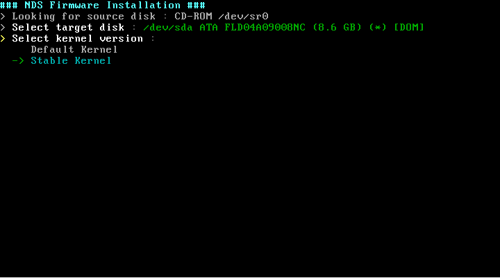 This is the drive selection window to install. You can select the DOM-SSD drive installed on the NDS.