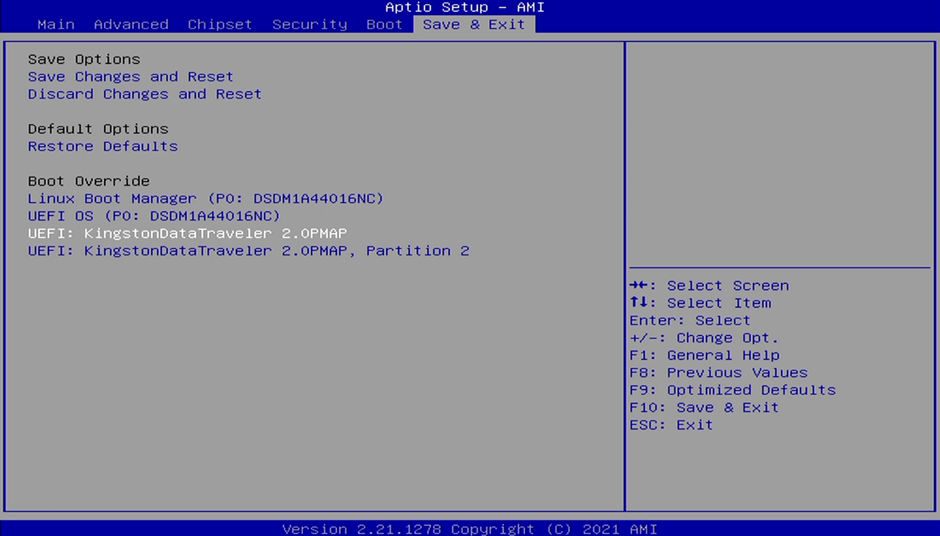 Connect the USB memory you created with Win32DiskImage to the NVR/VMS and press the "Del" key at boot to enter BIOS mode. If you check and select the USB connected in the Save & Exit menu, it will boot to USB.