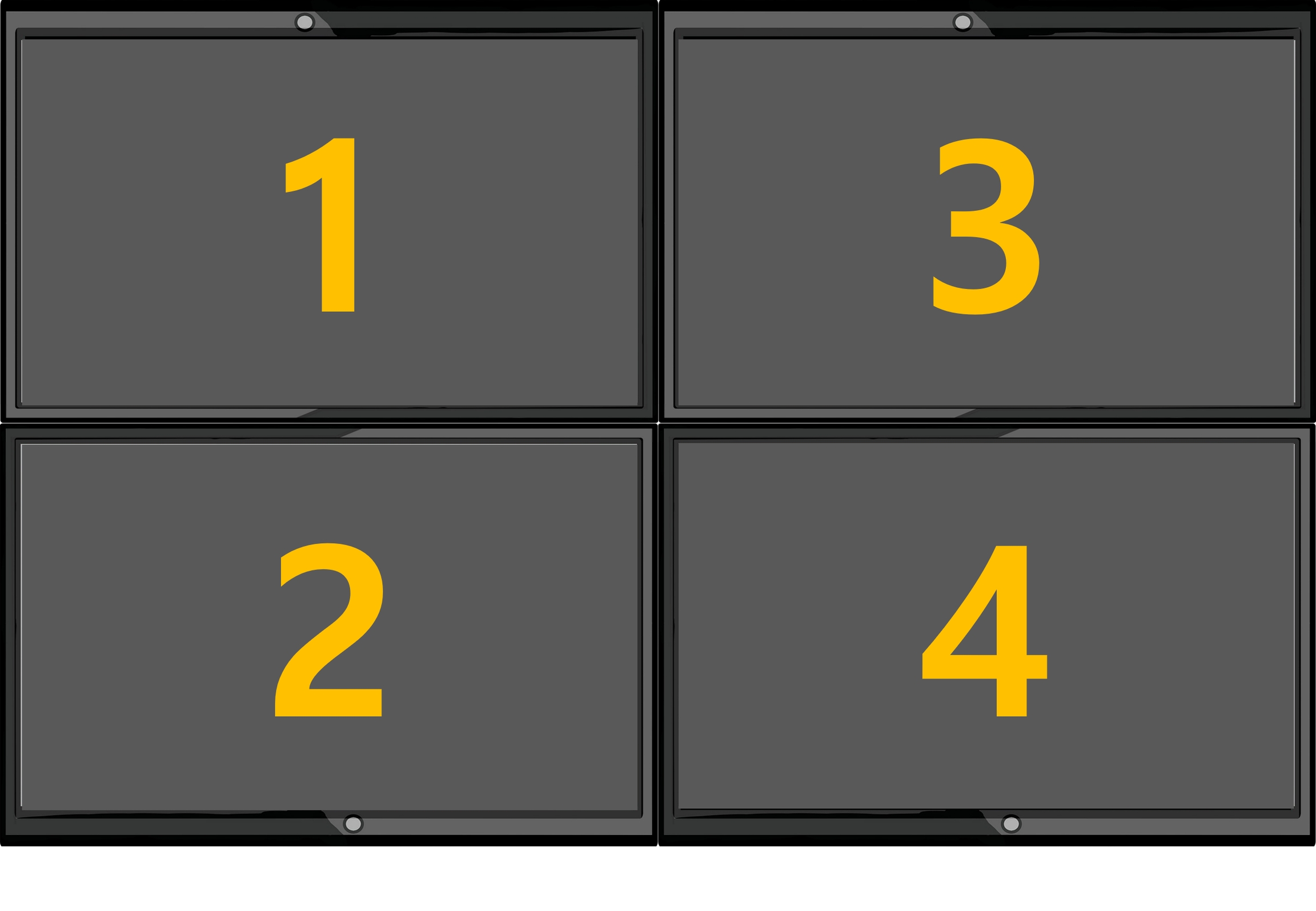 Each monitor can be moved to X and Y coordinate values. The coordinates vary depending on the monitor resolution, and in the case of the picture above, there are four FHD (1920x1080) monitors. Therefore, for monitor number 4, it is located at X : 1920, Y : 1080. Number 1 X : 0, Y : 0 Number 2 X: 0, Y: 1080 Number 3 X : 1920, Y : 0 Number 4 X : 1920, Y : 1080